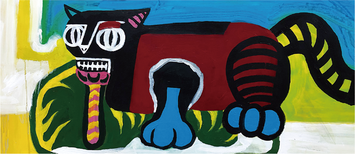 Minxiong has always given me a sense of familiarity, perhaps because I come from a rural background. What I find most endearing about Minxiong is its original name - "Da Mao" (打貓), which means "beating cats." When I first heard it, I found it quite amusing. Minxiong's logo has always been related to cats, so I wanted to reinterpret the name "Da Mao" in my artistic style, to let everyone know that Minxiong has this adorable nickname.